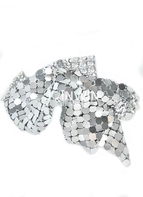 Aluminum sequin fabric is made of the flexible aluminum flakes. There are different flakes diameters, 3mm, 4mm, 6mm, 8mm, 10mm.It can be divided into two distinct applications, as clothing design and as metal curtains used in interior decoration.It is a very wonderful product, and we hope to bring you more design inspiration, and constantly open up new application ideas. It has more features such as smooth surface, various colors are available, fashion design, shiny and bright. Regardless of the applications, it can be easily installed or fixed into different shapes for splendid decorative effect.