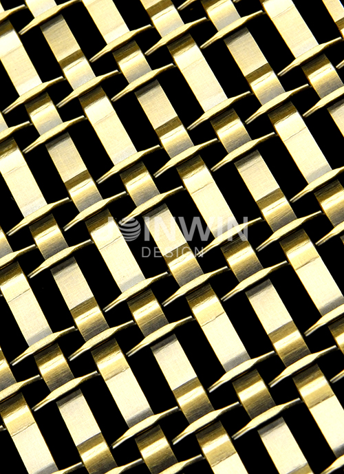 Architectural woven metal mesh can be made of stainless steel, aluminum, brass, copper and so on. Architectural braided wire mesh is made of wire of different materials. The color could be gold, copper, bronze, silvery and so on. Architectural woven metal mesh used in the elevator not only has good ventilation, but also has a strong decorative effect. A large selection of styles and colors, make the unique design and visual effect. The luster of the metal is very good, and you can feel different aesthetics from different angles. Different colors and materials reflect different design concepts.