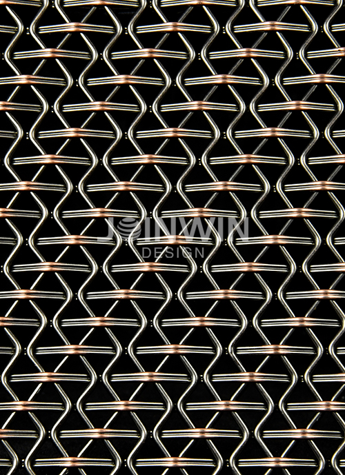 Architectural woven metal mesh can be made of stainless steel, aluminum, brass, copper and so on. Architectural braided wire mesh is made of wire of different materials. The color could be gold, copper, bronze, silvery and so on. Architectural woven metal mesh used in the elevator not only has good ventilation, but also has a strong decorative effect. A large selection of styles and colors, make the unique design and visual effect. The luster of the metal is very good, and you can feel different aesthetics from different angles. Different colors and materials reflect different design concepts.
