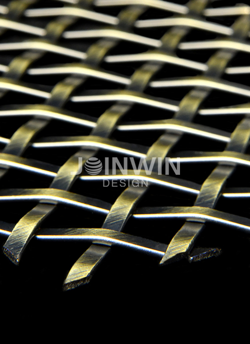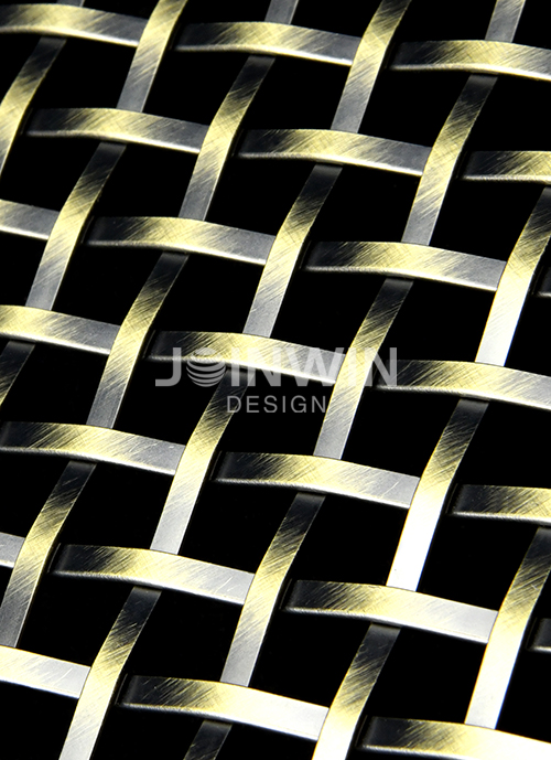 Architectural woven metal mesh can be made of stainless steel, aluminum, brass, copper and so on. Architectural braided wire mesh is made of wire of different materials. The color could be gold, copper, bronze, silvery and so on. Architectural woven metal mesh used in the elevator not only has good ventilation, but also has a strong decorative effect. A large selection of styles and colors, make the unique design and visual effect. The luster of the metal is very good, and you can feel different aesthetics from different angles. Different colors and materials reflect different design concepts.