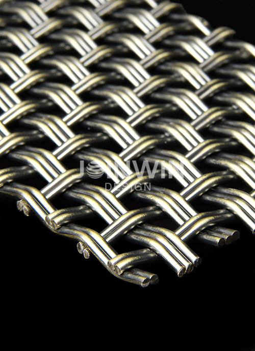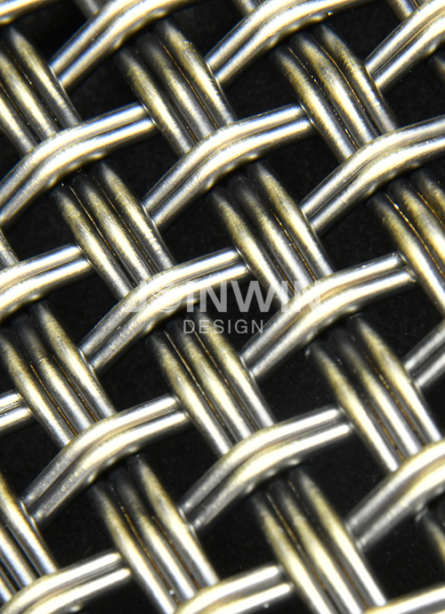 Architectural woven metal mesh can be made of stainless steel, aluminum, brass, copper and so on. Architectural braided wire mesh is made of wire of different materials. The color could be gold, copper, bronze, silvery and so on. Architectural woven metal mesh used in the elevator not only has good ventilation, but also has a strong decorative effect. A large selection of styles and colors, make the unique design and visual effect. The luster of the metal is very good, and you can feel different aesthetics from different angles. Different colors and materials reflect different design concepts.