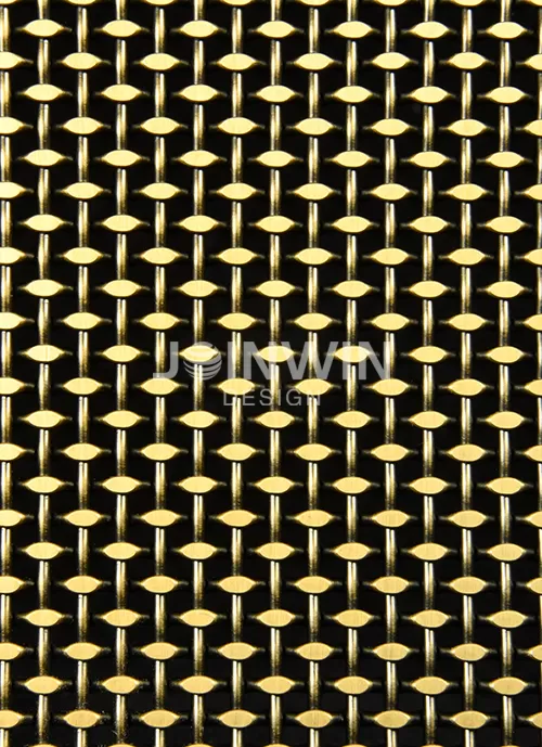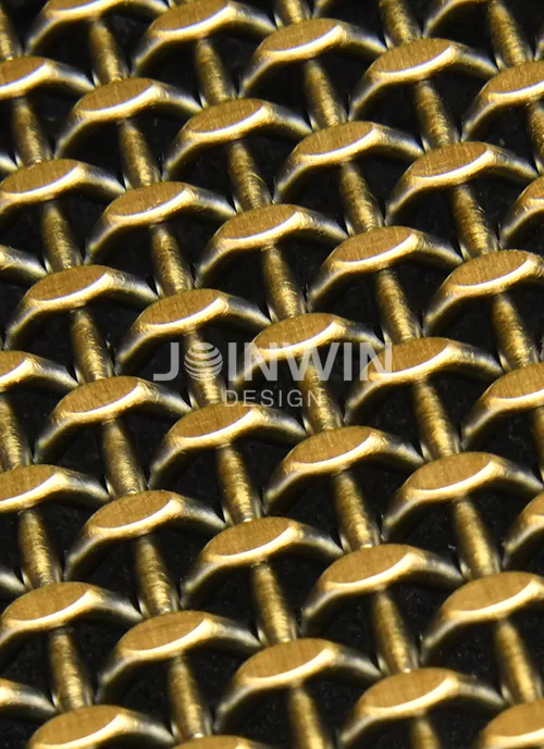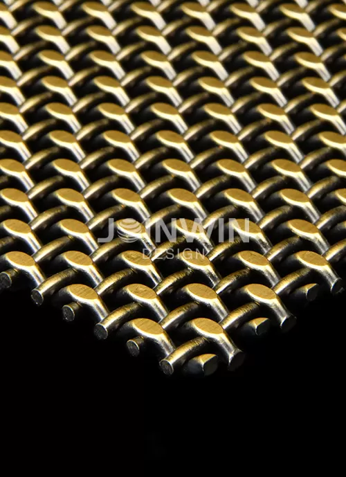 Architectural woven metal mesh can be made of stainless steel, aluminum, brass, copper and so on. Architectural braided wire mesh is made of wire of different materials. The color could be gold, copper, bronze, silvery and so on. Architectural woven metal mesh used in the elevator not only has good ventilation, but also has a strong decorative effect. A large selection of styles and colors, make the unique design and visual effect. The luster of the metal is very good, and you can feel different aesthetics from different angles. Different colors and materials reflect different design concepts.