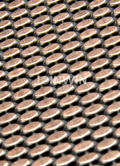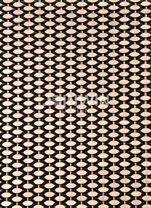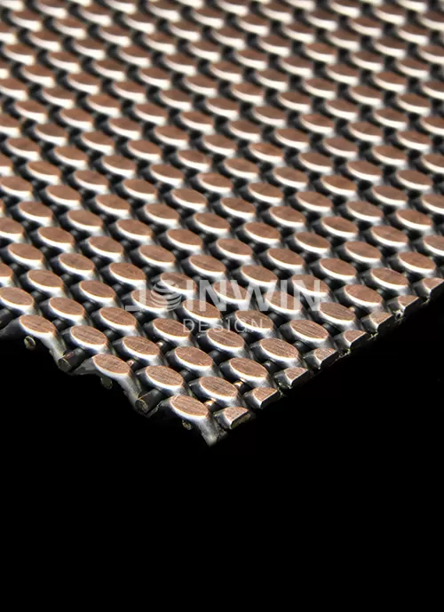 Architectural woven metal mesh can be made of stainless steel, aluminum, brass, copper and so on. Architectural braided wire mesh is made of wire of different materials. The color could be gold, copper, bronze, silvery and so on. Architectural woven metal mesh used in the elevator not only has good ventilation, but also has a strong decorative effect. A large selection of styles and colors, make the unique design and visual effect. The luster of the metal is very good, and you can feel different aesthetics from different angles. Different colors and materials reflect different design concepts.
