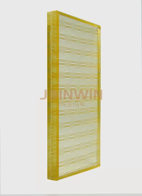 Mesh Laminated Glass is very decorative, and is widely used in interior decoration, such as screen, facade decoration, artworks and so on.