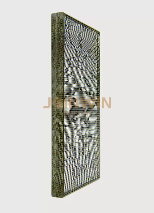 Mesh Laminated Glass is very decorative, and is widely used in interior decoration, such as screen, facade decoration, artworks and so on.