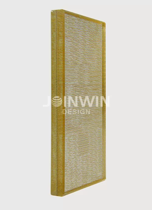 Mesh Laminated Glass is very decorative, and is widely used in interior decoration, such as screen, facade decoration, artworks and so on.